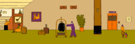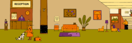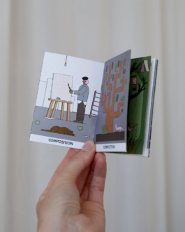 Leporello showing a scene in a hotel lobby based on the movie "Grand Budapest Hotel" by Wes Anderson, 2021.